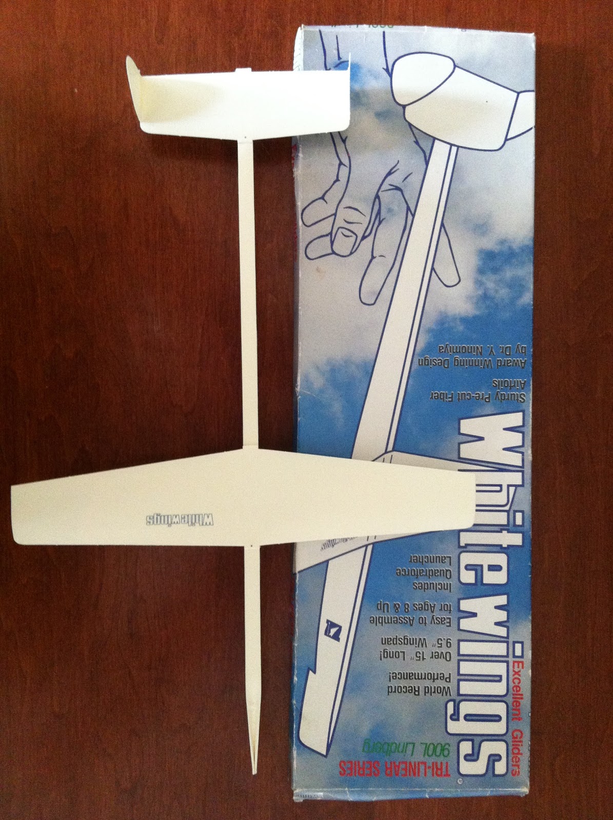 I had the opportunity to build this really easy to assemble Whitewings Tri-Linear 900L Lindberg model airplane. It is a thick paper airplane. It flies like a dream. You can either fly it via hand toss, or use a sling shot. If you are looking for an airplane to build in the morning, and fly all afternoon, this is it.